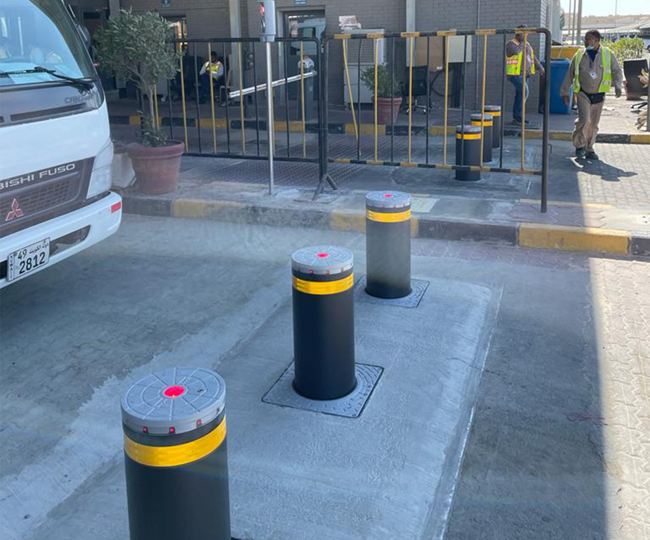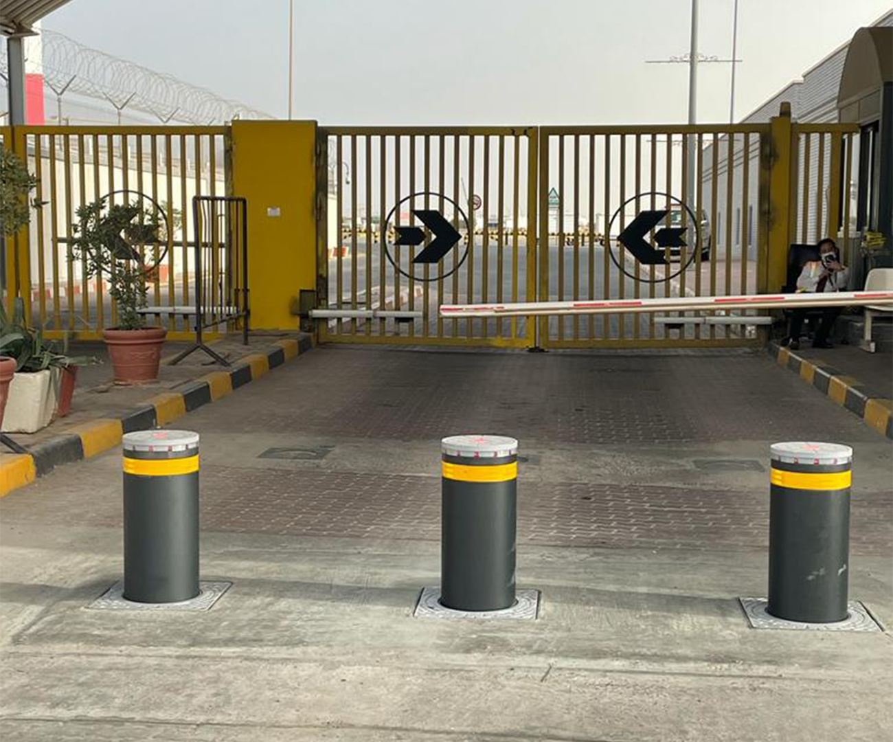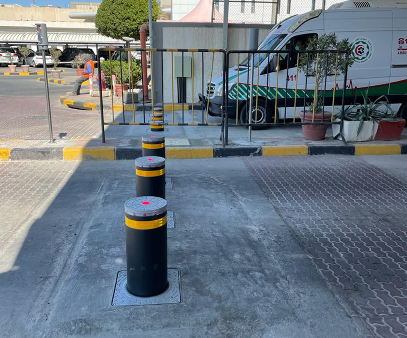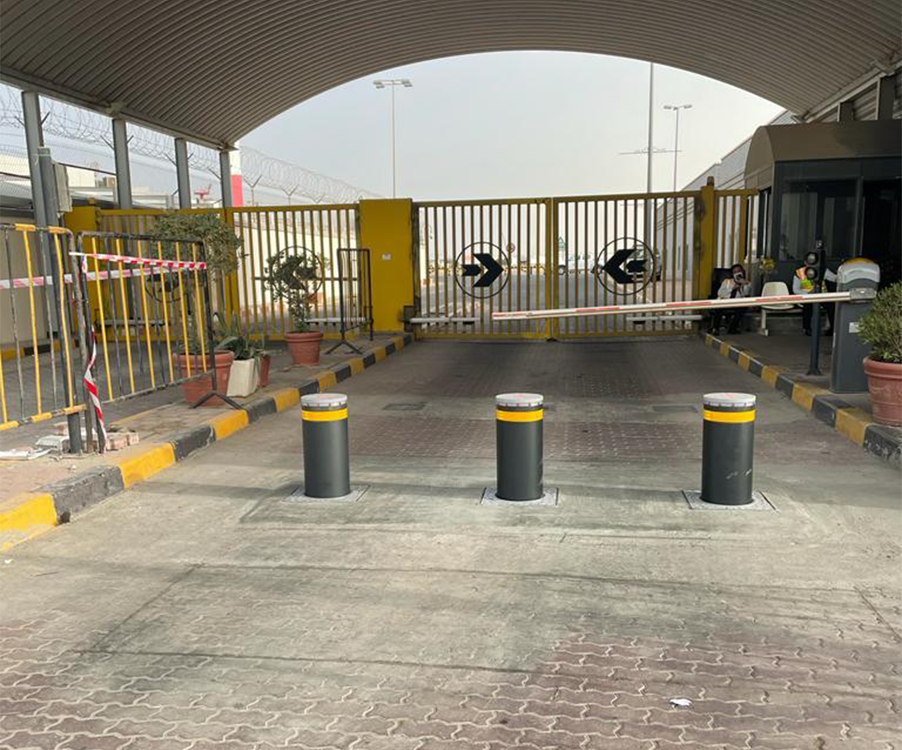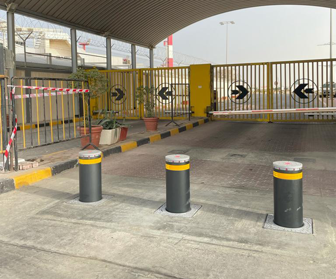FAAC J275 hydraulic bollards at the airport passenger entrance
