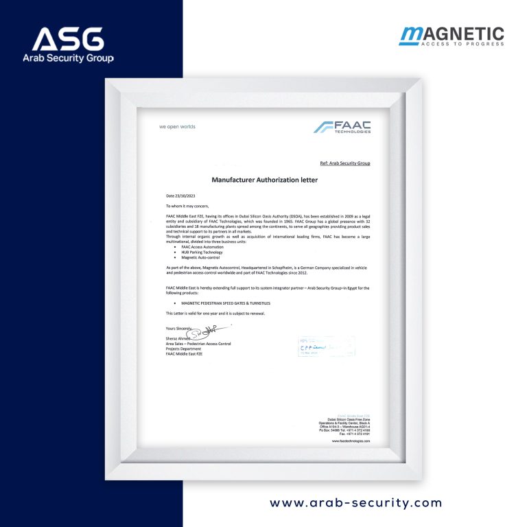 Arab Security Group is thrilled to announce its official partnership with two renowned global leaders in the security and automation industry: FAAC Technologies and CENTURION. As the newly authorized partner for FAAC Technologies and CENTURION in Egypt, we are poised to deliver unparalleled security, access control, and automation solutions to our esteemed clients across the nation.